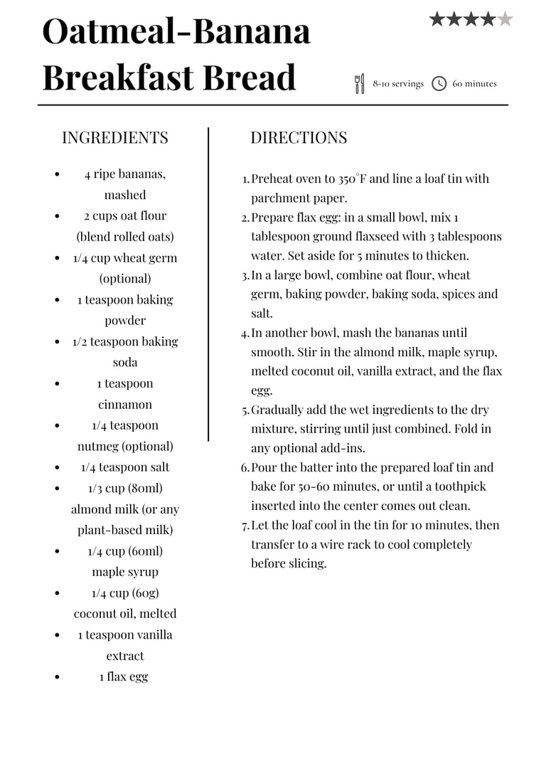 If baked oat and banana bread had a baby - I think this would be the result. This breakfast bread is a perfect grab-an-go kind of breakfast and such a crowdpleaser. When I get to baking these, I always make 1 spare that I can keep in the freezer for busy weeks.